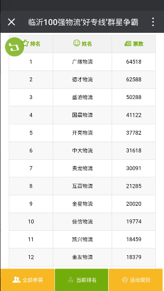 (物流城)临沂物流之都好专线“群星争霸”赛广缘物流勇夺第一名。
